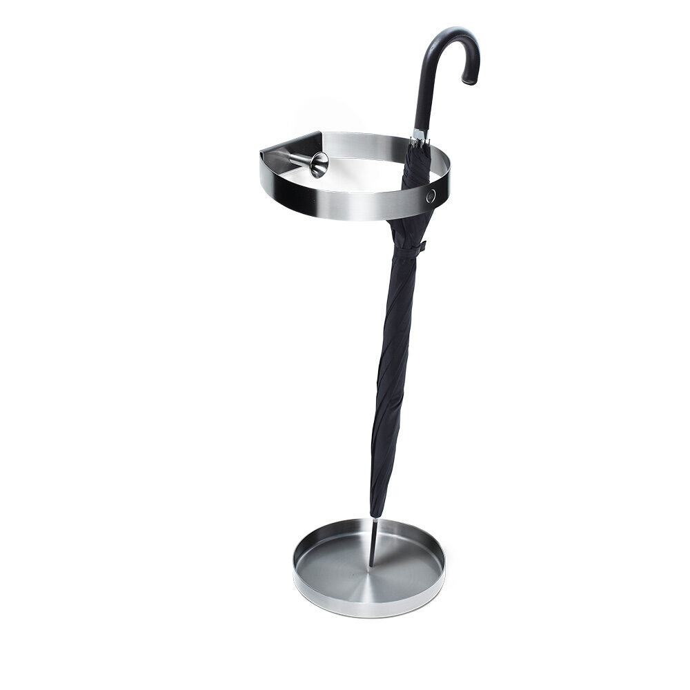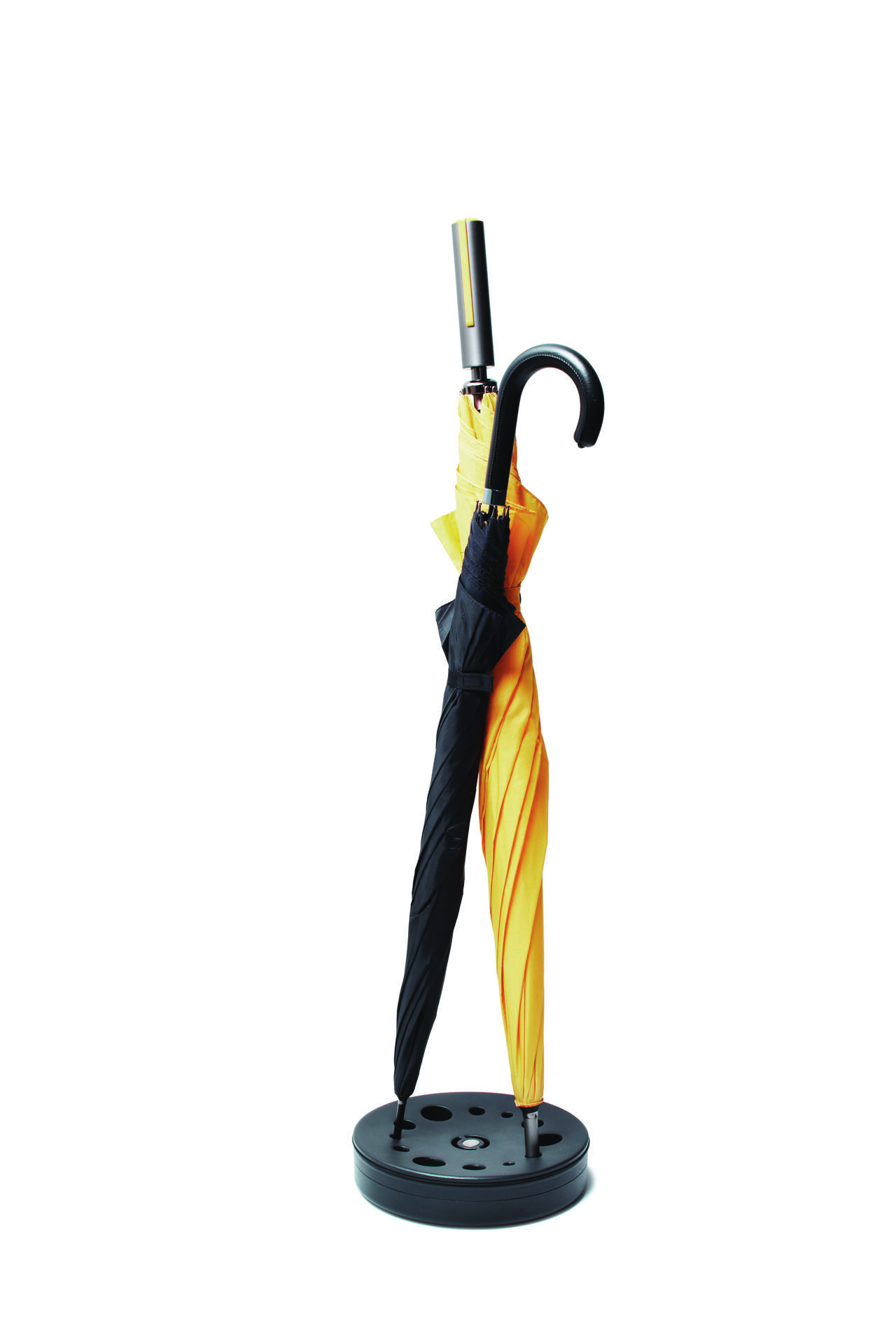Een vrijstaande, zware standaard die elke paraplu rechtop houdt – van slank, elegant design tot robuust, winddicht. Plaats de paraplu eenvoudig in een van de nauwkeurig uitgesneden openingen; de stevige voet zorgt voor perfecte stabiliteit. Verkrijgbaar in zwart, wit en roestvrij staal, passend bij elke interieur- of exterieurstijl.